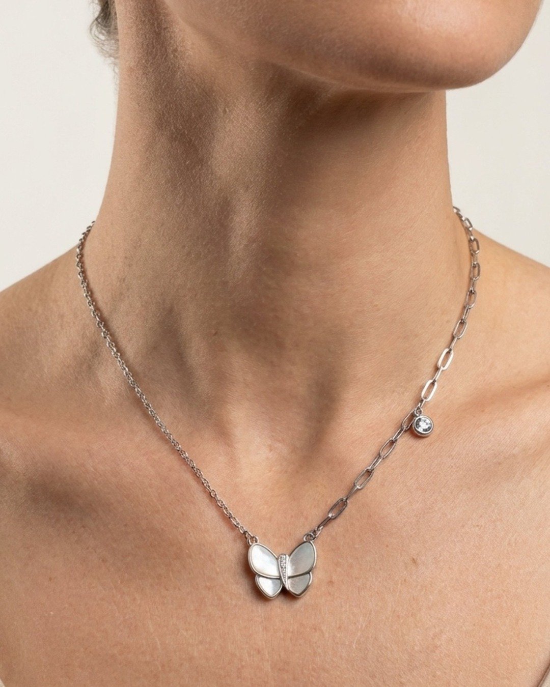 Asymmetrical Butterfly Link Necklace – 925 Sterling Silver