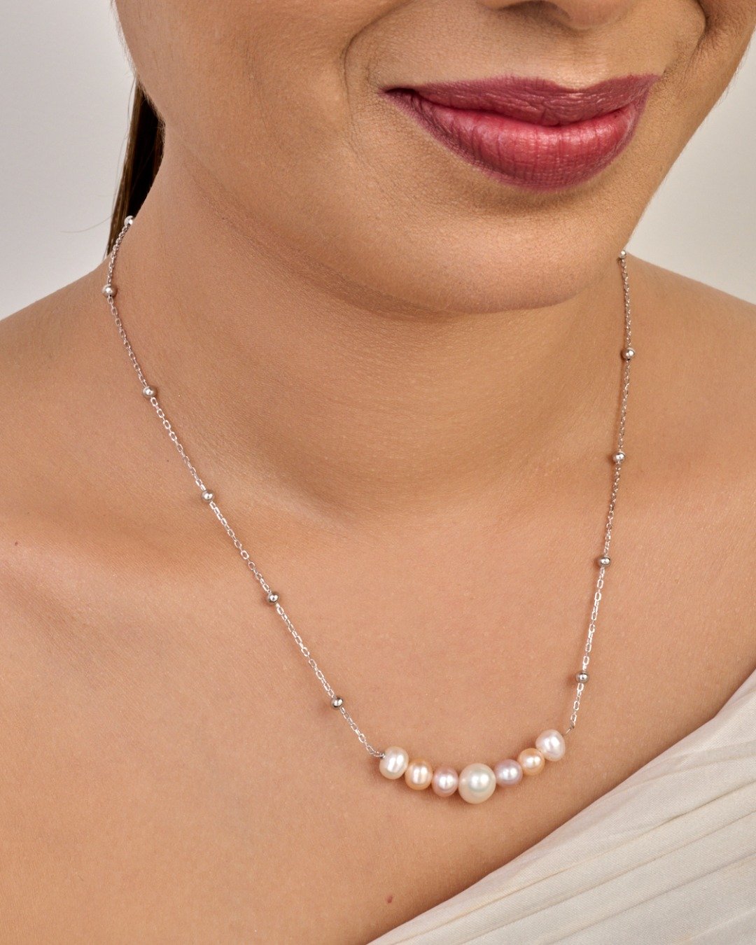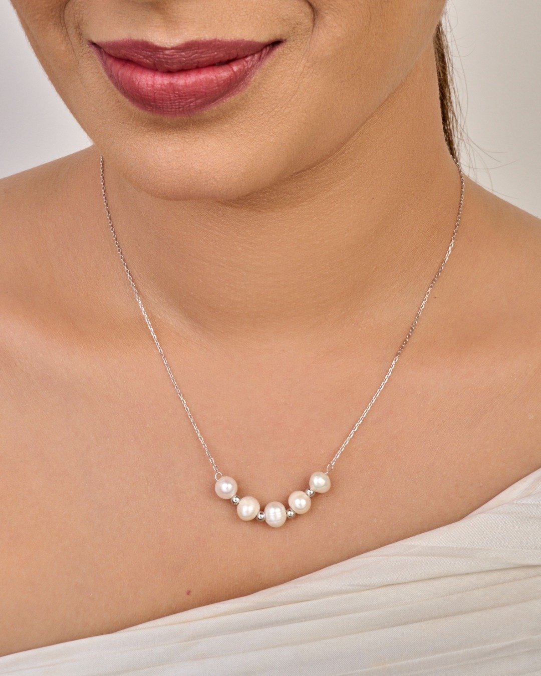 Minimal Pearl Chain Necklace – 925 Sterling Silver