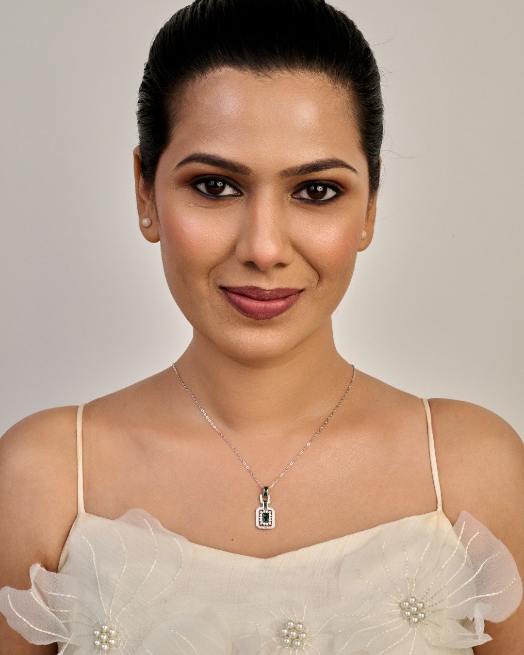 Emerald Link Halo Pendant Necklace – 925 Sterling Silver