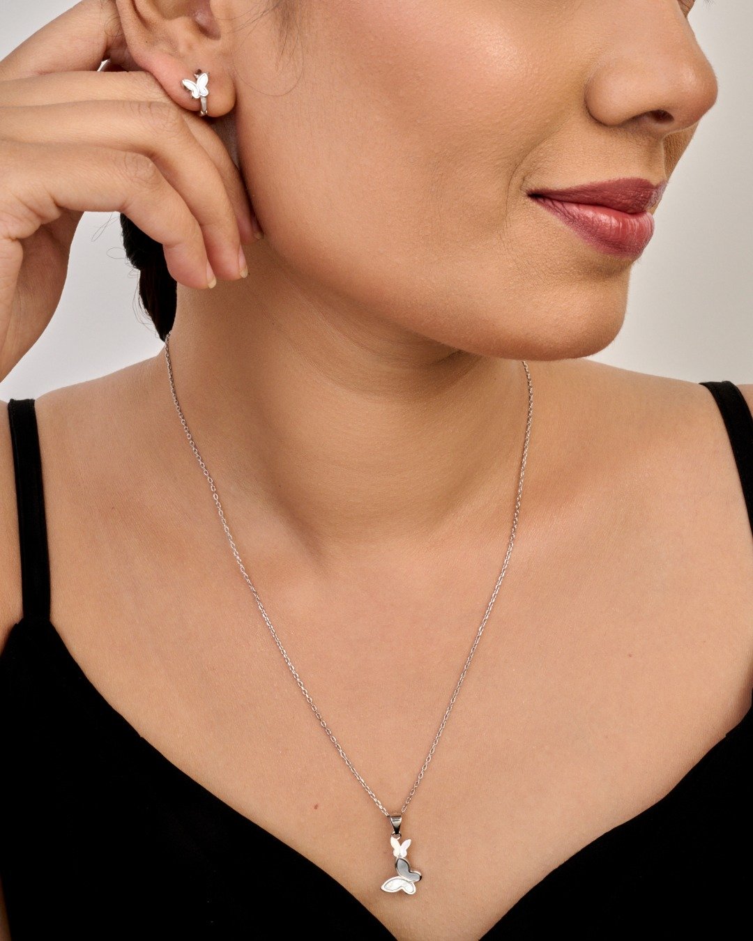 Elegant Floral Crystal Pendant Set – 925 Sterling Silver