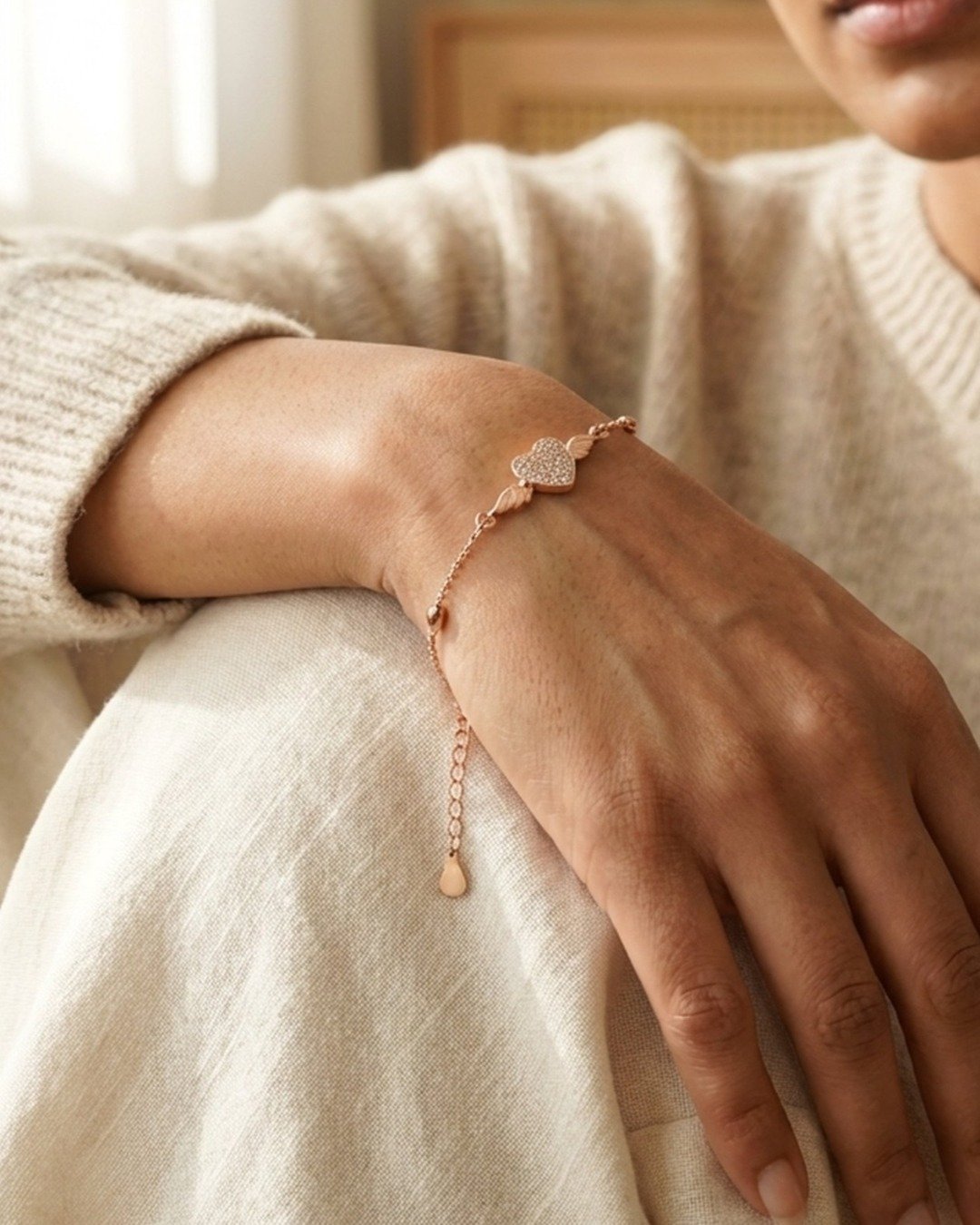 Angel Wing Heart Bracelet – Rose Gold Finish (925 Sterling Silver)