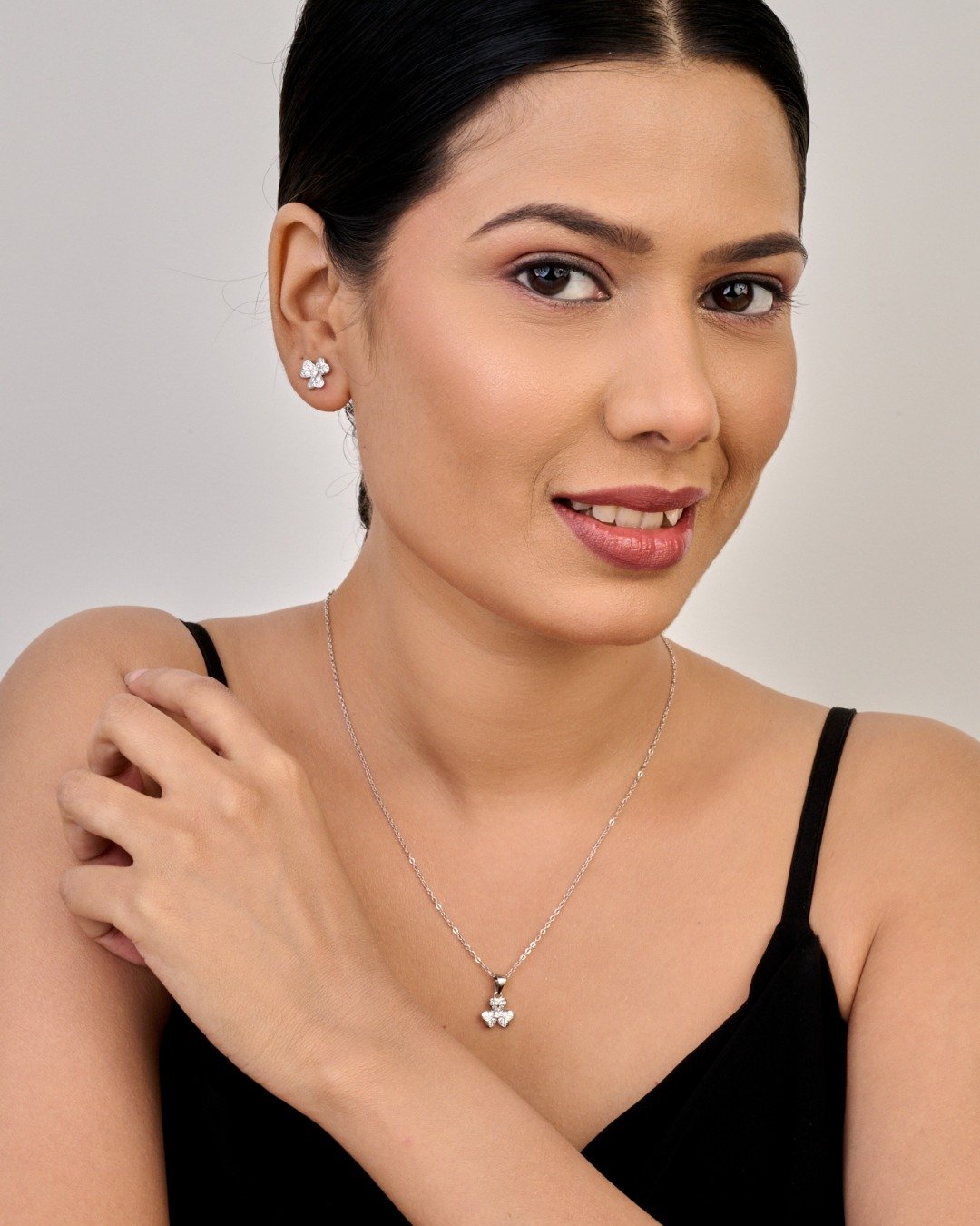 Floral Petal Crystal Pendant Set – 925 Sterling Silver