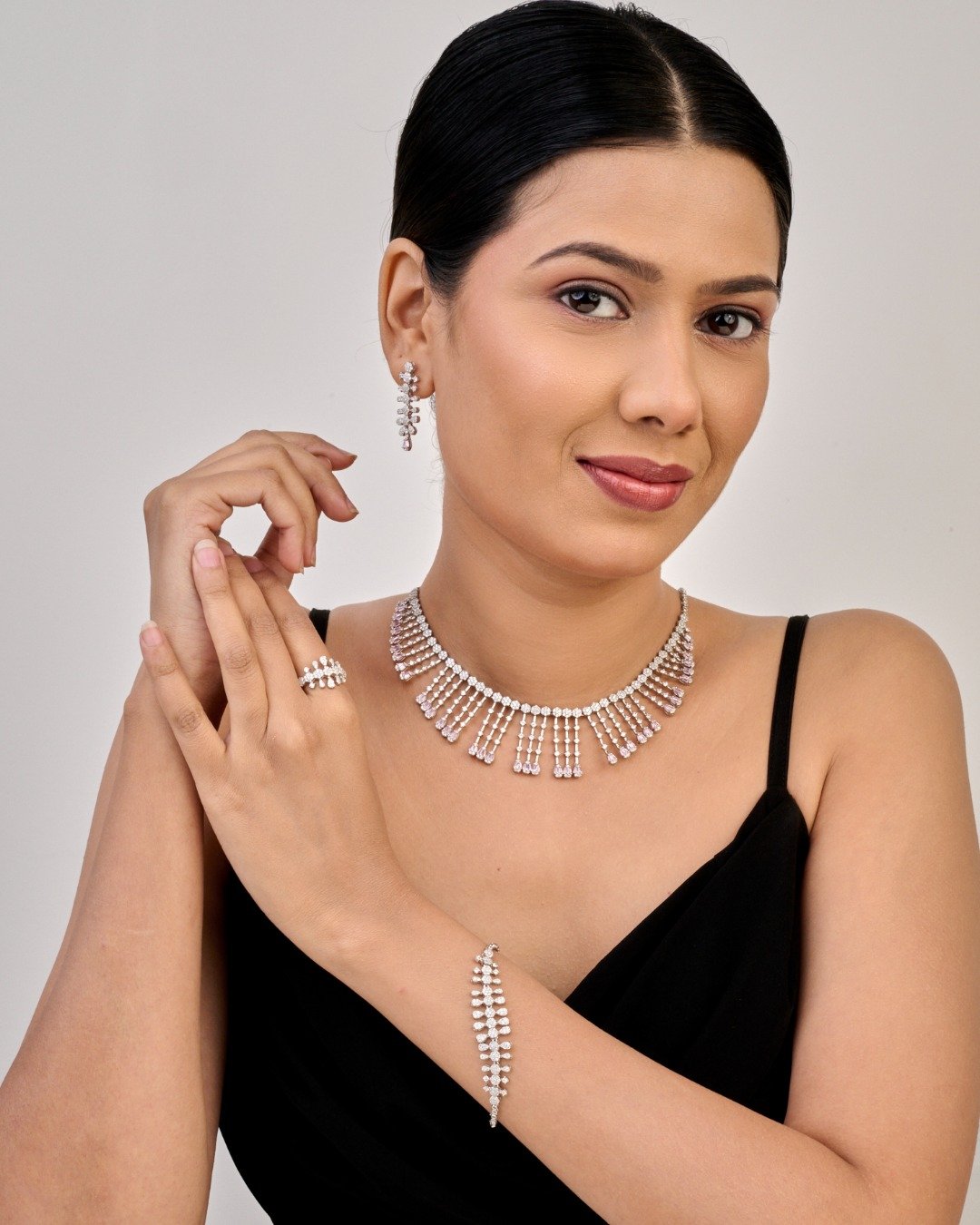 Elegant Diamond Finish Necklace Set (With Ring & Bracelet) – 925 Sterling Silver
