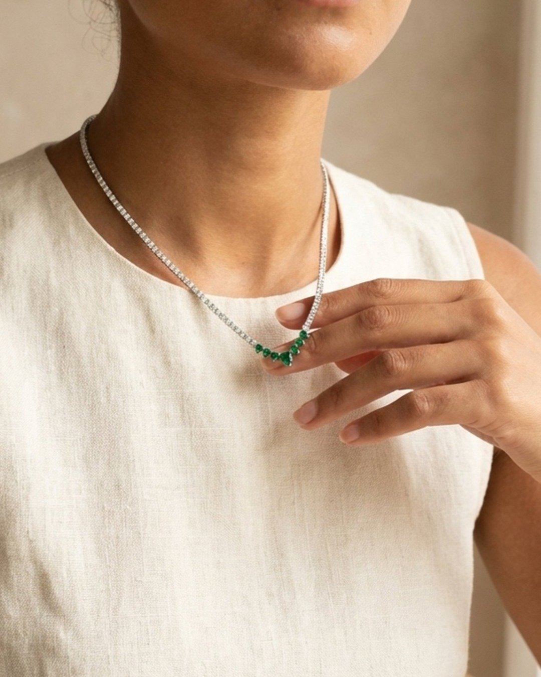 Classic Emerald Drop Tennis Necklace – 925 Sterling Silver