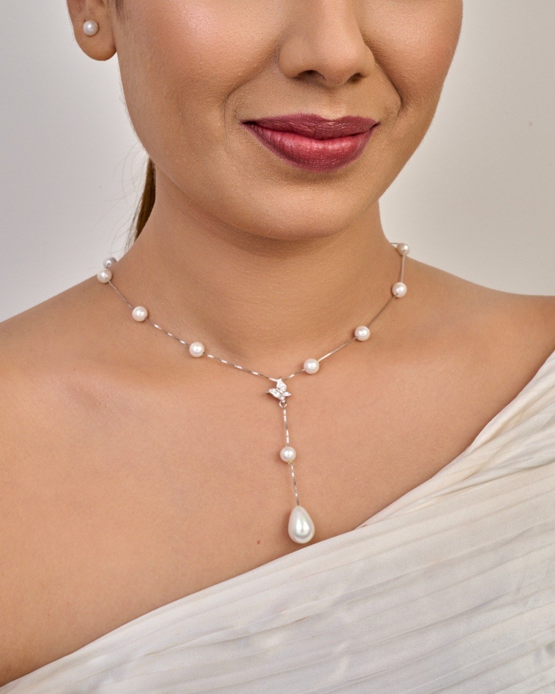Elegant Pearl Drop Necklace – 925 Sterling Silver