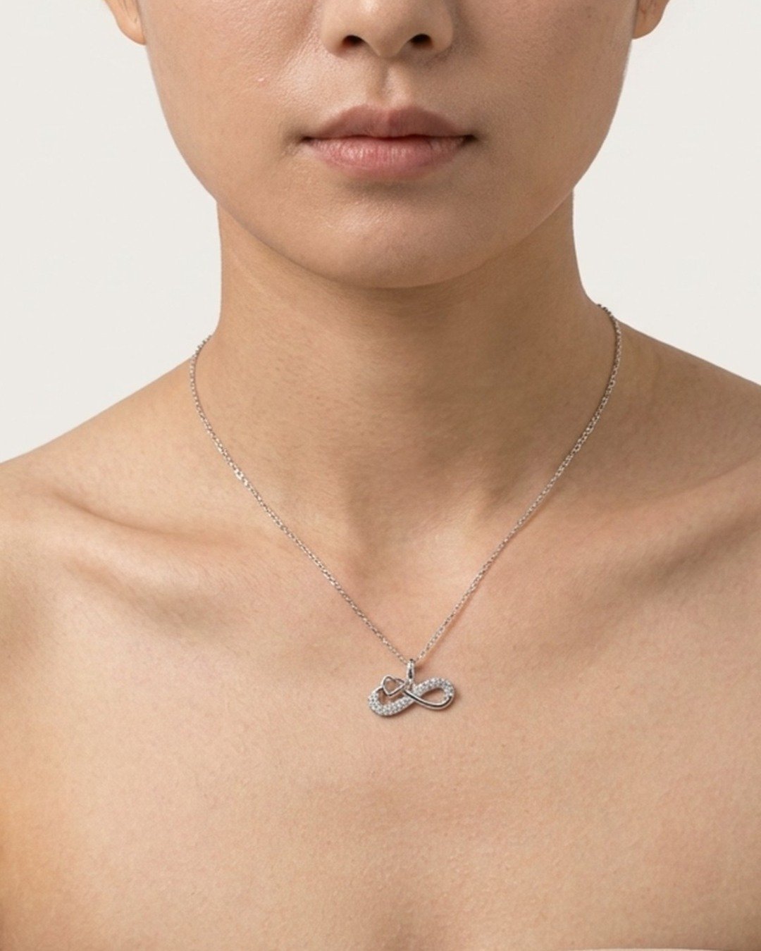 Infinity Heart Sparkle Pendant Necklace Set – 925 Sterling Silver