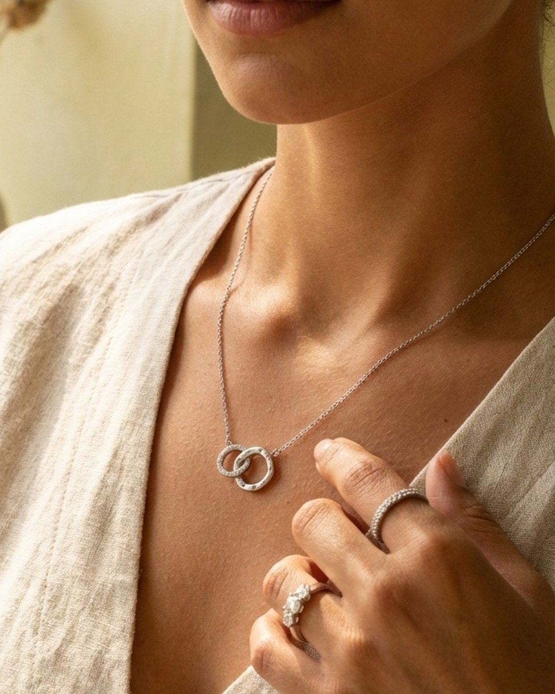 Dual Halo Interlock Pendant Necklace – 925 Sterling Silver