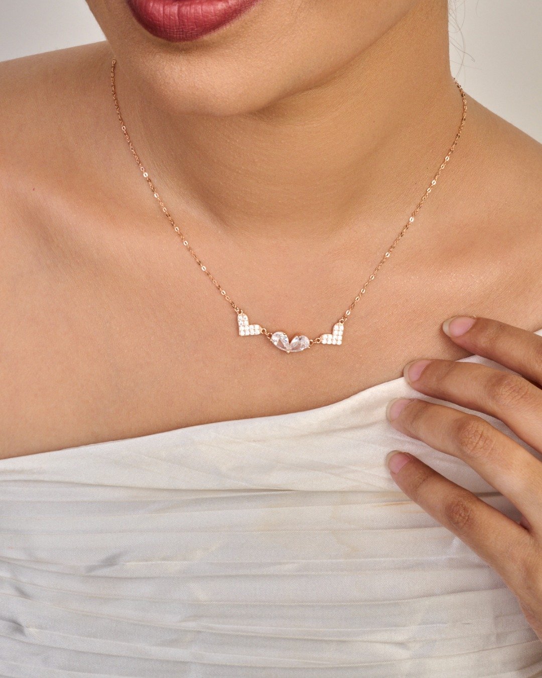 Rose Gold Leaf Sparkle Pendant Set – 925 Sterling Silver