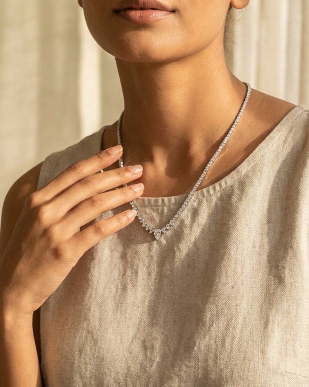 Royal Teardrop Tennis Necklace – 925 Sterling Silver
