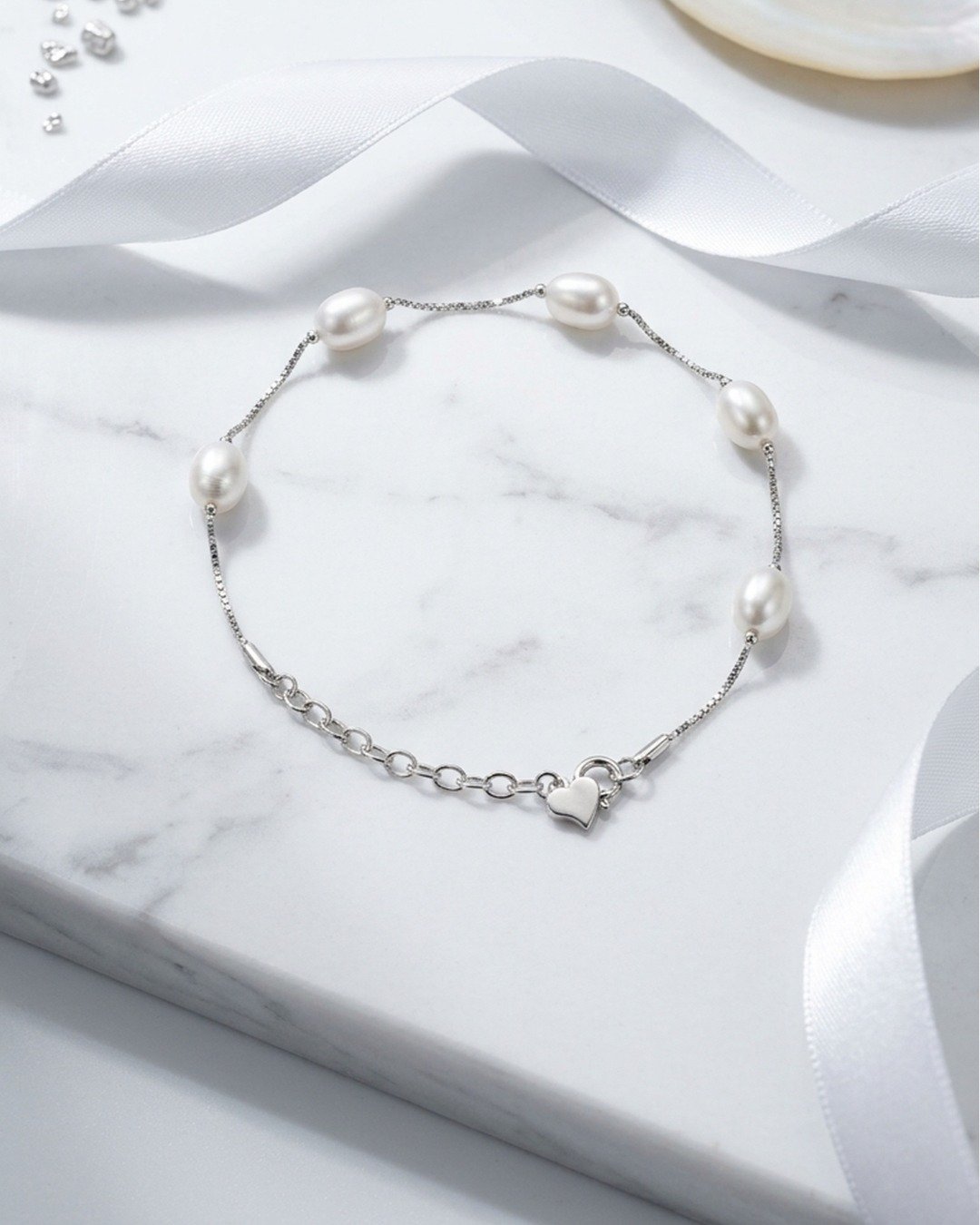 Classic Pearl Line Bracelet – 925 Sterling Silver