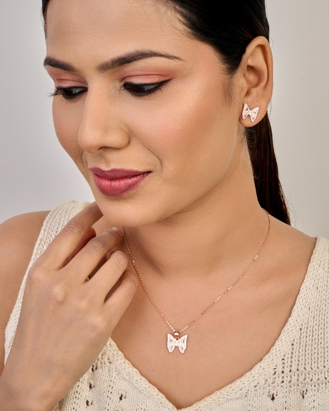 Rose Gold Elegant Butterfly Drop Pendant Set – 925 Sterling Silver