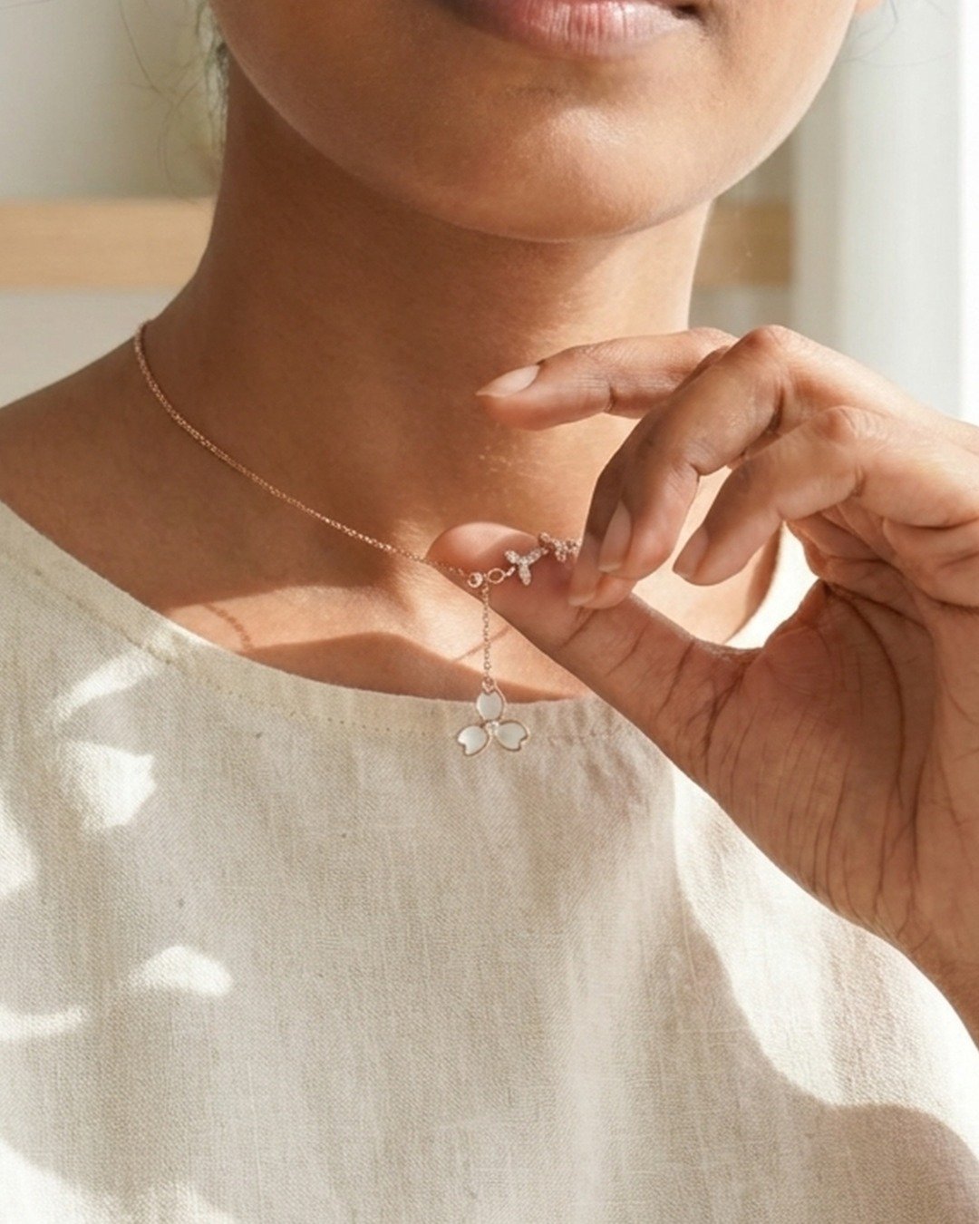 Rose Gold Triple Butterfly Drop Necklace – 925 Sterling Silver