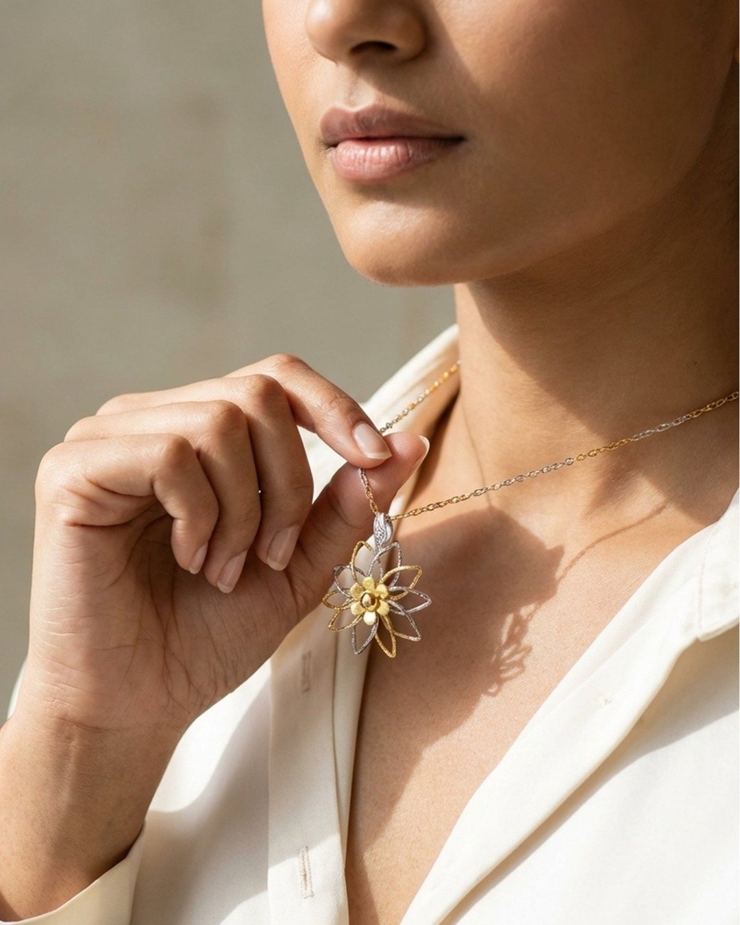 Tri-Tone Blossom Statement Pendant Necklace – 925 Sterling Silver