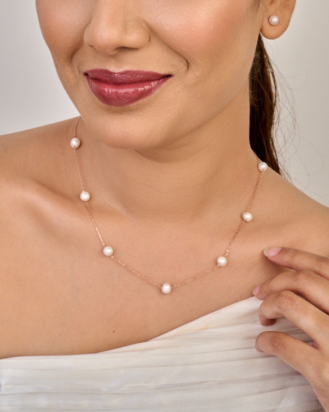 Classic Pearls Station Necklace – 925 Sterling Silver