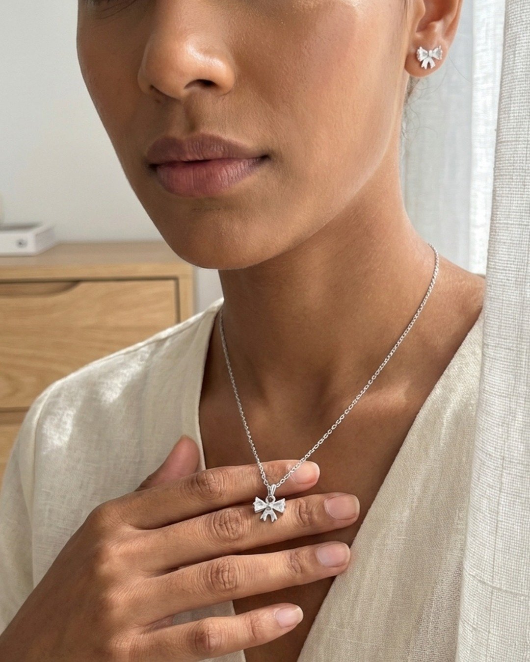 Delicate Crystal Bow Pendant Set – 925 Sterling Silver