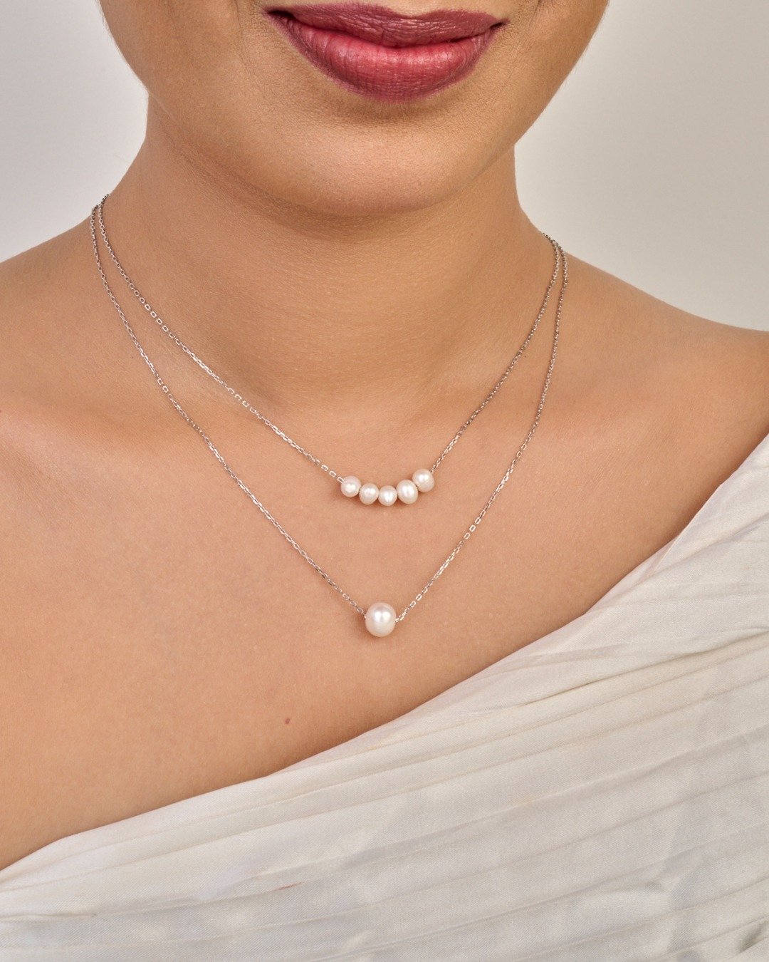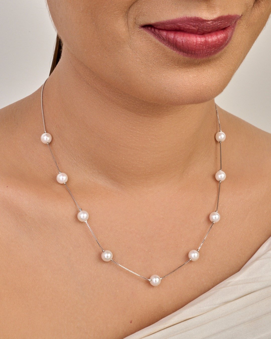 Delicate Pearl Station Necklace – 925 Sterling Silver