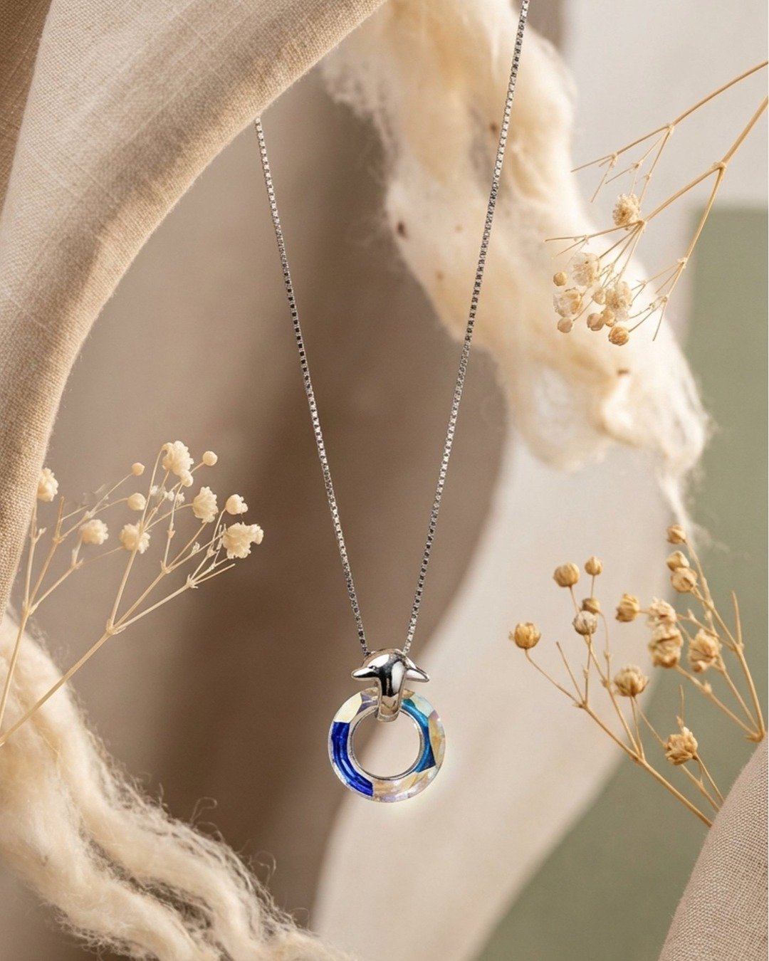 Aurora Circle Crystal Pendant Necklace Set – 925 Sterling Silver