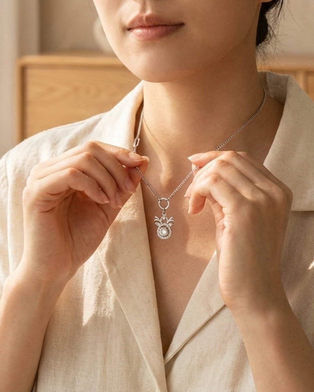 Dual Charm Drop Pendant Necklace Set – 925 Sterling Silver