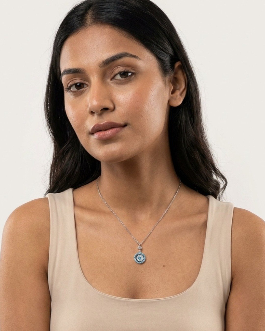 Blue Evil Eye Drop Pendant Necklace – 925 Sterling Silver