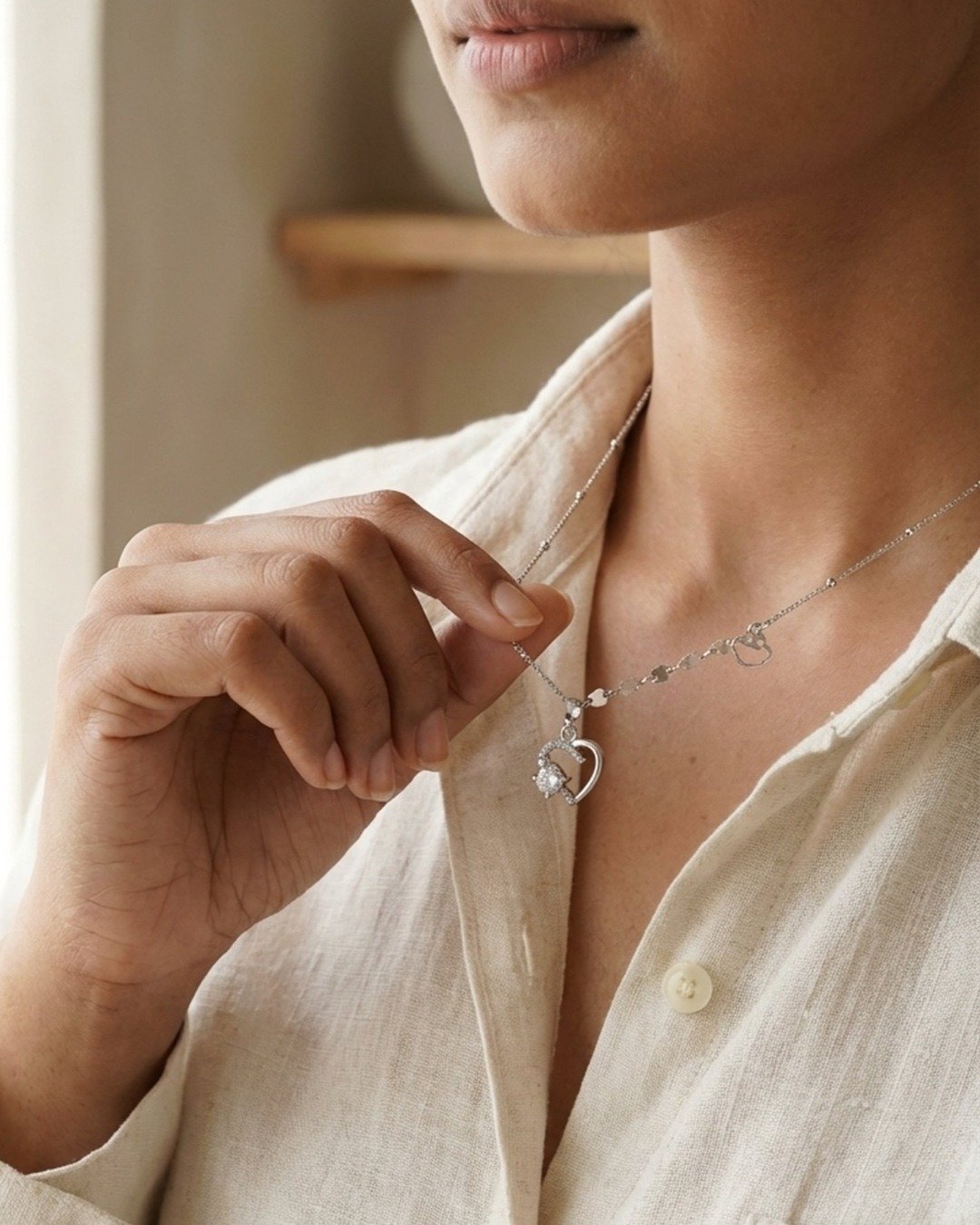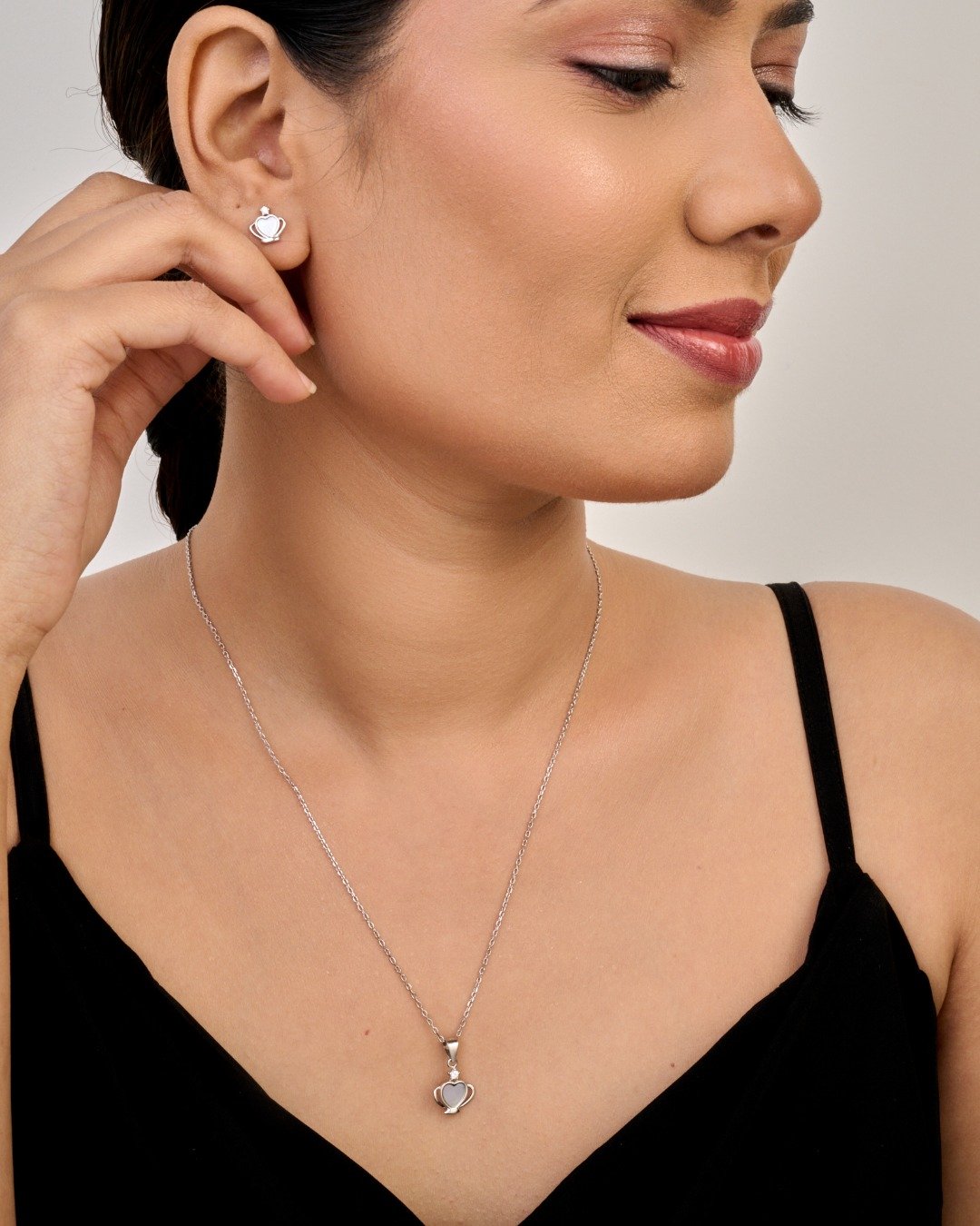 Romantic Heart Sparkle Pendant Necklace Set – 925 Sterling Silver