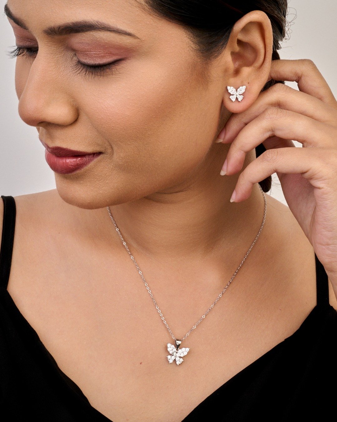 Sparkling Butterfly Crystal Pendant Set – 925 Sterling Silver
