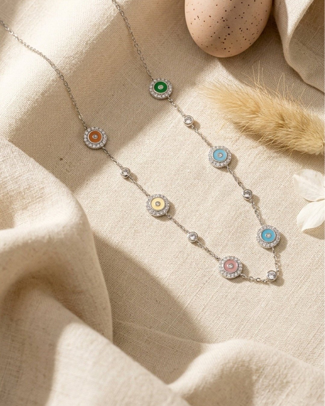 Pastel Halo Charm Station Necklace – 925 Sterling Silver
