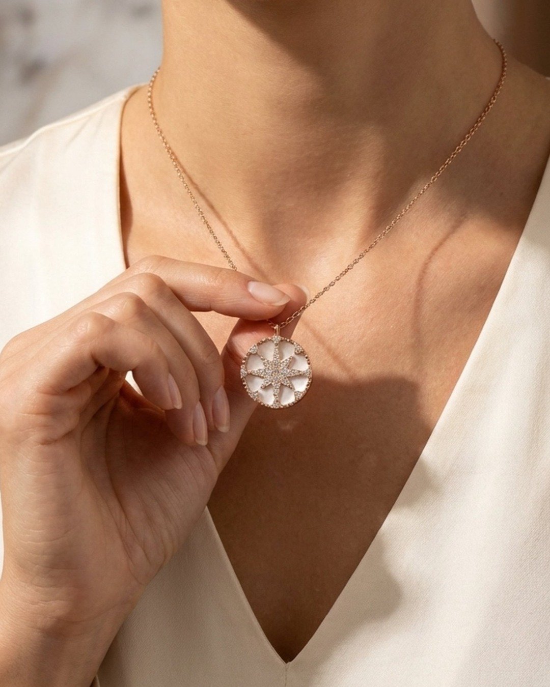 Rose Gold Crystal Bloom Pendant Set – 925 Sterling Silver
