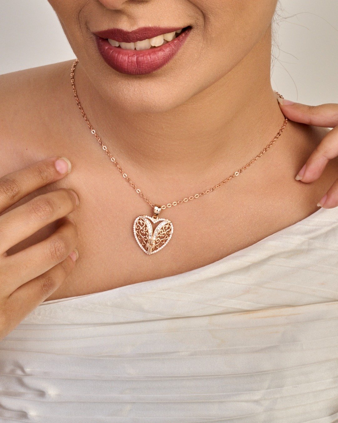 Royal Filigree Heart Pendant Necklace – 925 Sterling Silver