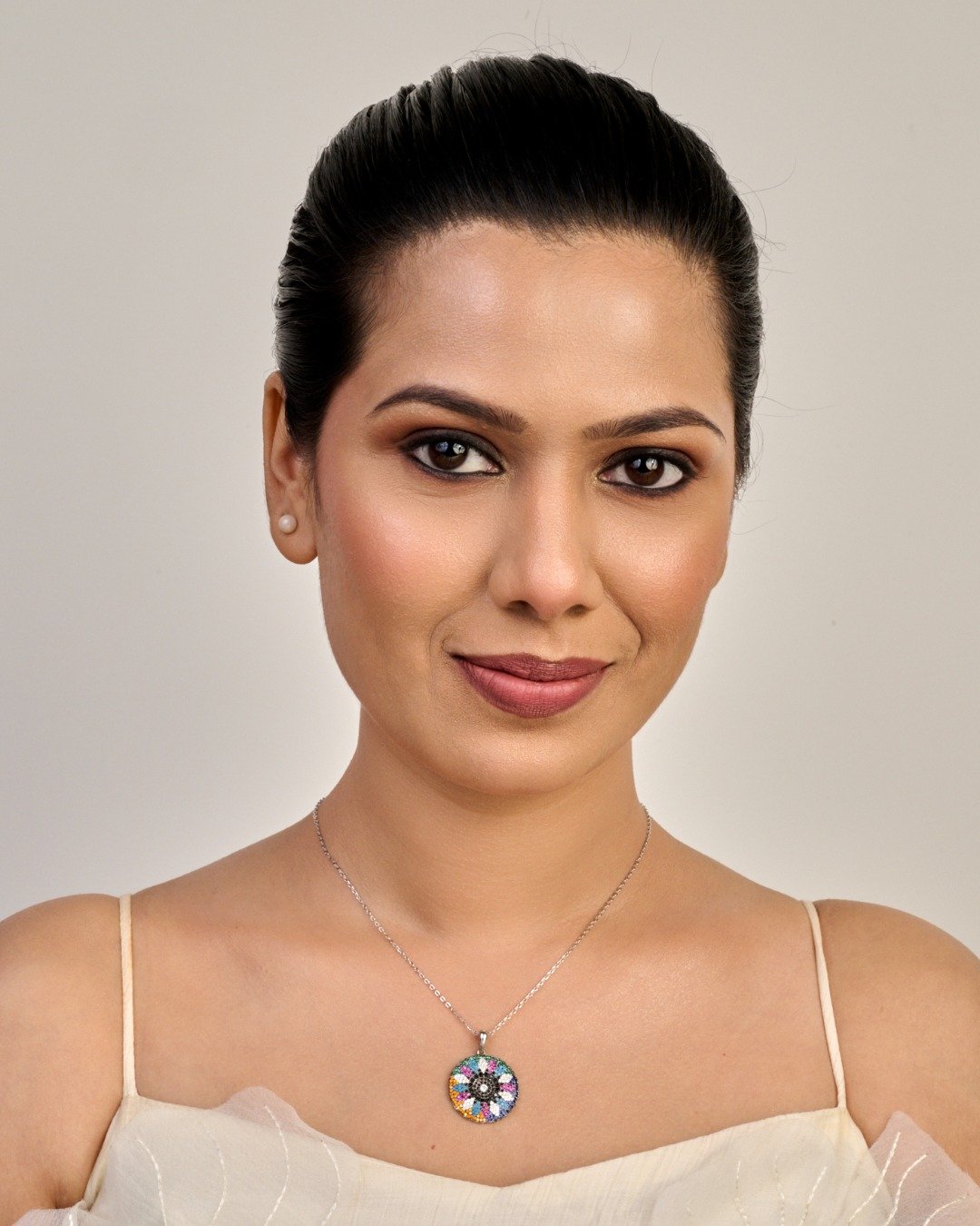Multicolor Floral Medallion Pendant Necklace Set – 925 Sterling Silver